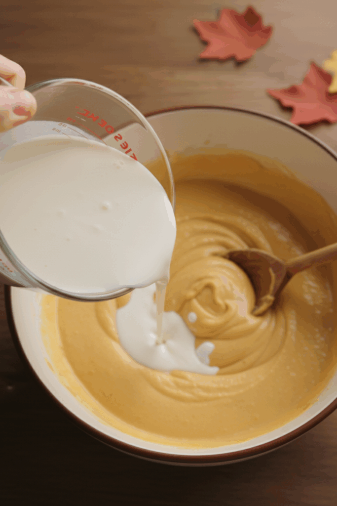 Beat in the pumpkin puree. Alternate adding the dry ingredients and buttermilk, starting and ending with the dry ingredients. Mix just until combined—do not overmix.