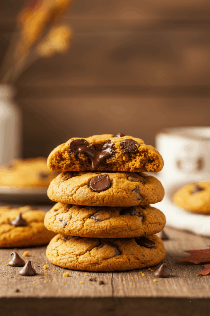 A fall twist on the classic cookie – soft, chewy, and studded with semi-sweet chocolate chips.
