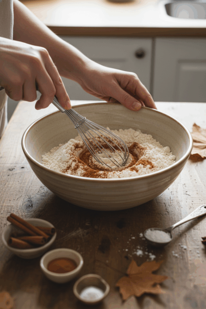 In a medium bowl, whisk together the gluten-free flour, baking powder, baking soda, salt, and spices. This ensures even distribution and prevents clumping.