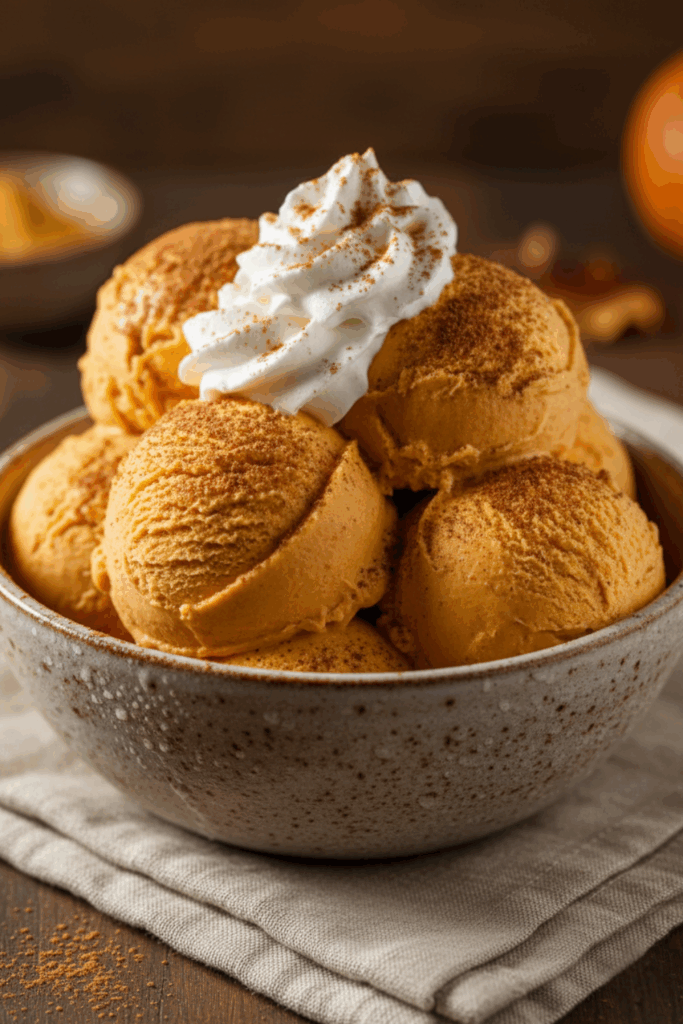 No-churn pumpkin ice cream is easy to make at home! Blend puree with condensed milk, cinnamon, vanilla extract, and whipped cream. Freeze overnight.