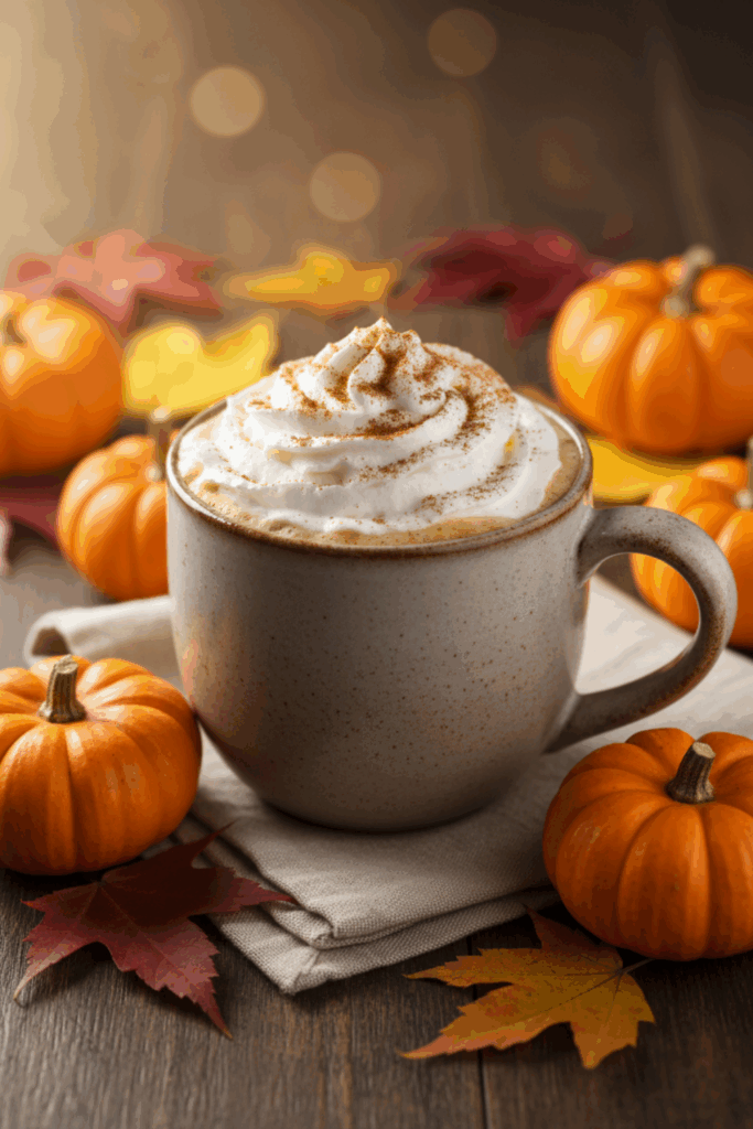 Save the coffee shop trip! Heat milk with pumpkin puree, sugar, pumpkin spice, and vanilla. Froth and pour over strong brewed coffee or espresso.