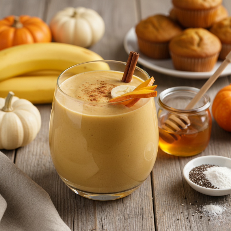 Looking for an energizing breakfast or post-workout snack? This smoothie blends Greek yogurt, banana, pumpkin puree, and a dash of pumpkin pie spice.