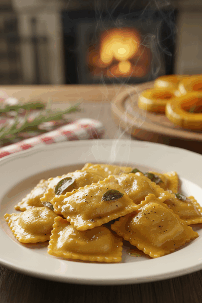 Make (or buy) ravioli stuffed with savory pumpkin filling, then toss in browned butter with sage. Top with parmesan for Italian-style indulgence.