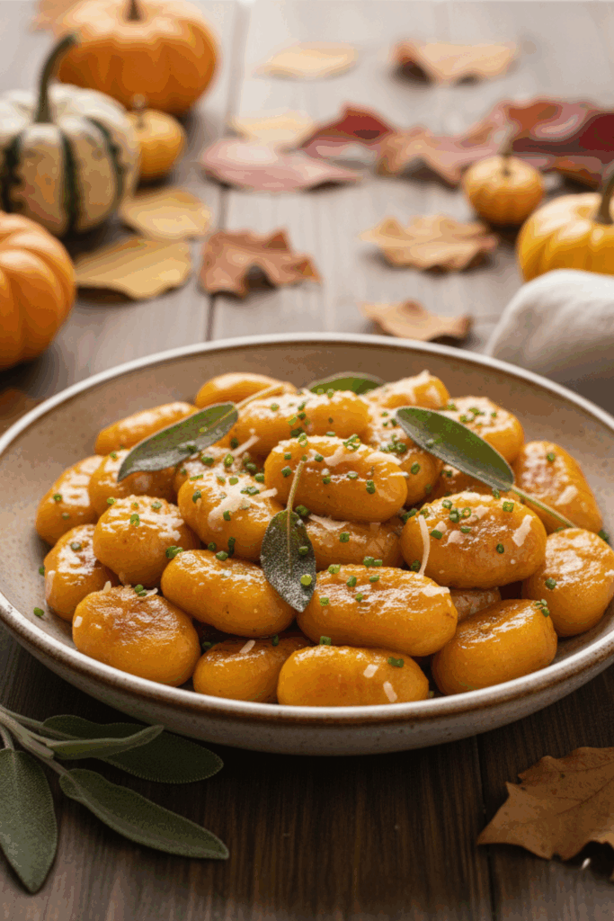 Homemade pumpkin gnocchi pan-seared until golden, then tossed in browned butter and fresh sage. Comfort in every bite.
