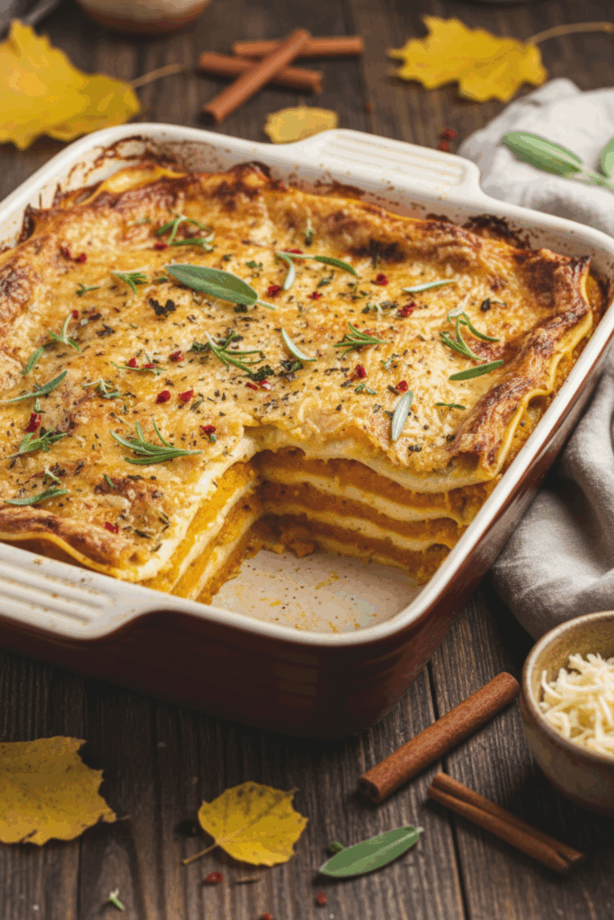 Layers of pumpkin béchamel, sautéed spinach, and lasagna noodles create a luscious comfort food with a twist. Use oven-ready noodles to make prep even easier.