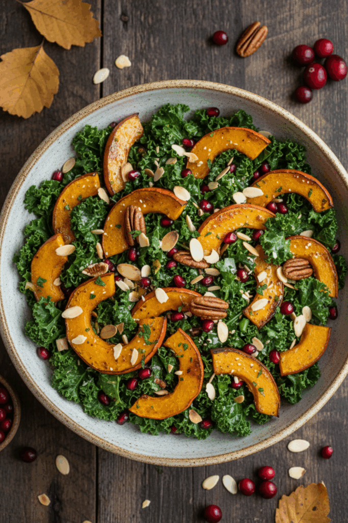 This warm salad is filled with roasted pumpkin cubes, massaged kale, cranberries, and pepitas. Dress it with a maple-Dijon vinaigrette for a perfectly balanced flavor.