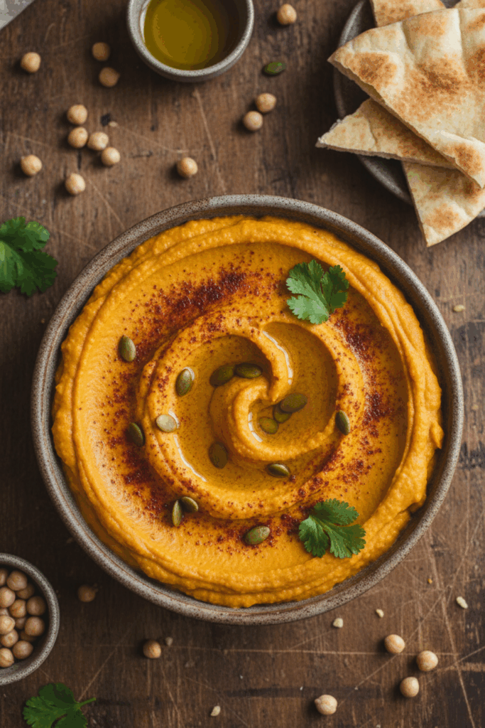 A seasonal twist on everyone’s favorite dip. The creaminess of pumpkin blends perfectly with tahini and garlic. Serve with pita chips or fresh vegetables.