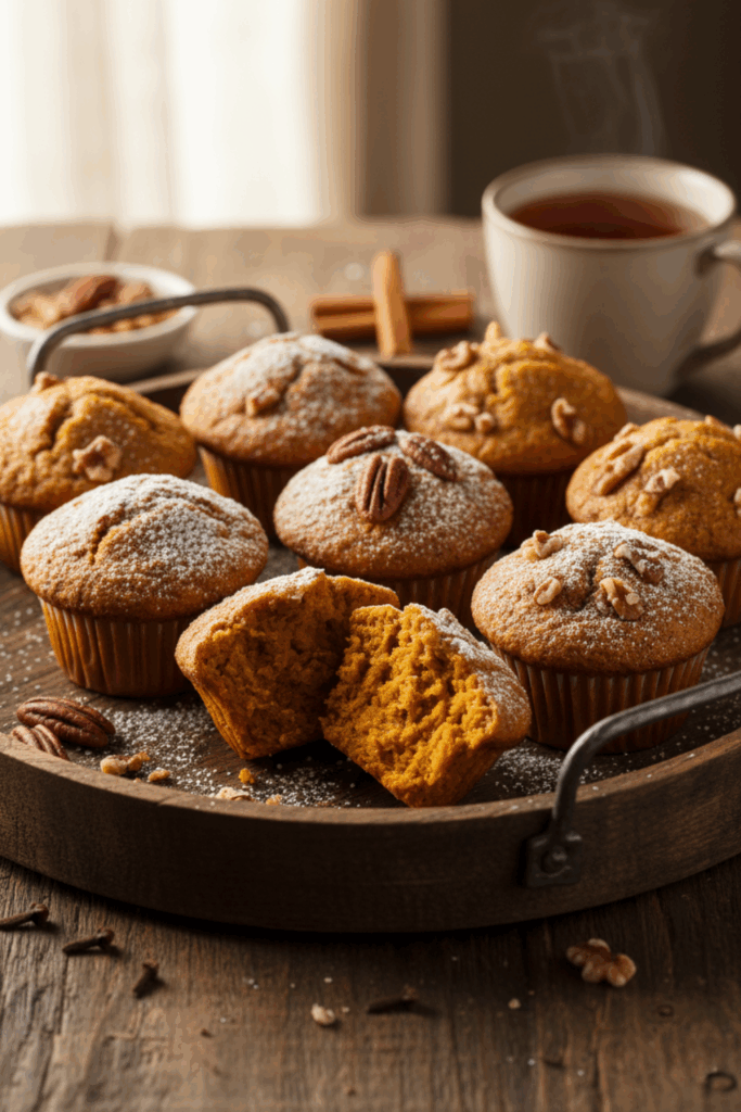 Moist, fluffy, and spiced with pumpkin pie flavors, these muffins are kid-approved and make a perfect grab-and-go snack or breakfast treat.
